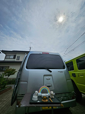 ご自宅駐車場にてご家族の皆様が見守られる中、愛に溢れた素敵なセレモニーでした。